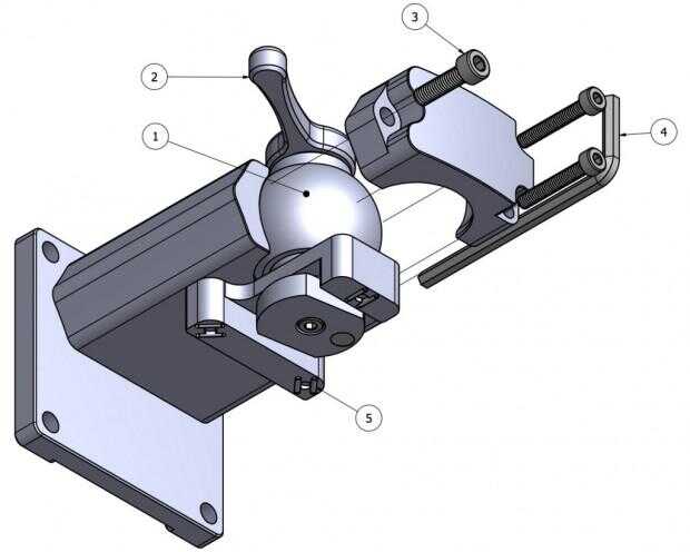 La articulación esférica permite que la cabeza de la construcción para ajuste de pitch, yaw, roll y Z. Esto permite que la cabeza de la estructura esté alineado paralelo a la superficie de los PDMS.