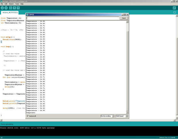 Después de unos minutos, mi estación dice que la temperatura ambiente es 26.4. Mientras tanto, el sensor dice que la temperatura es... 24,8 ° C. nos encontramos en la tolerancia dada por Microchip, pero no lo suficientemente precisa.