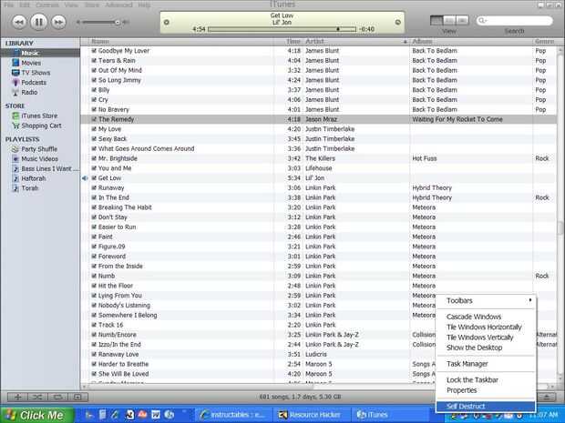 ¡ ACTUALIZACIÓN! ME DI CUENTA DE MENÚ! para cambiar el menú es cuando usted haga clic derecho en la barra de tareas, ir a 205. I havnt averiguado lo que el resto hacer... le di mi ordenador otro botón del destruct del uno mismo. Jus siguen el mismo formato que todas las otras: "MENUITEM"S & elf Destruct", 418" (acaba de tomar un número al azar sin usar... no lo no hace.)