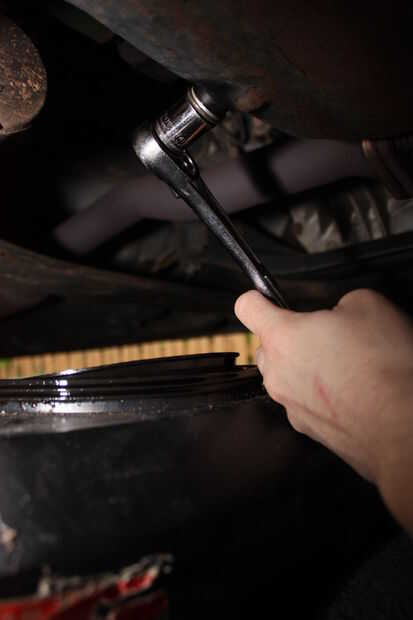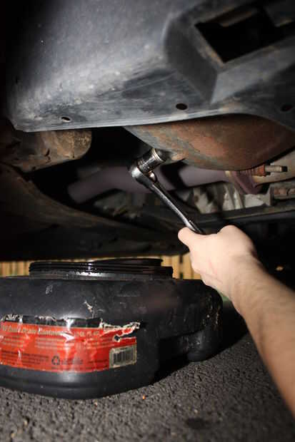 1. Coloque el aceite coger contenedor debajo del vehículo.