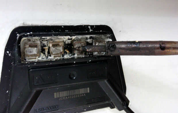 Tenga cuidado al eliminar soldadura y cuando desmonte la caja de conexiones. los cables o clavijas son muy suaves y puede rasgar o cortar por el cuchillo de papel...