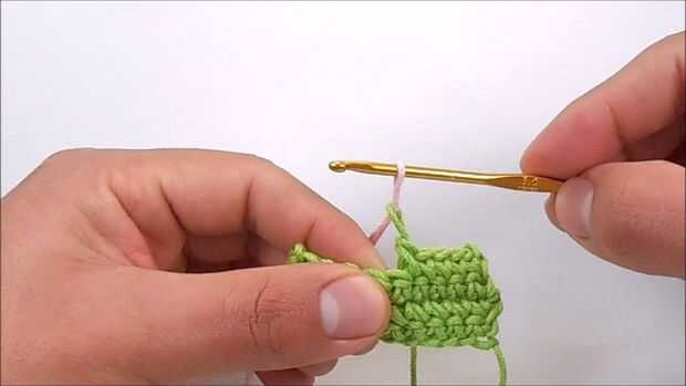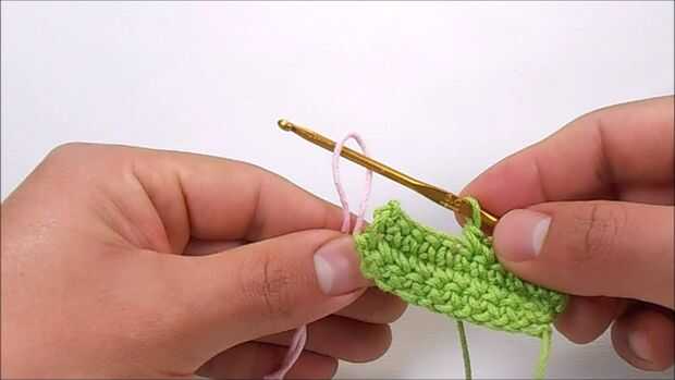 cuando necesite cambiar el color o añadir más hilo, he encontrado una gran transición que es apenas perceptible. En el último paso de una puntada, hilado del lazo nuevo en gancho y a través del último paso. Tus puntadas de ganchillo sobre los dos ext