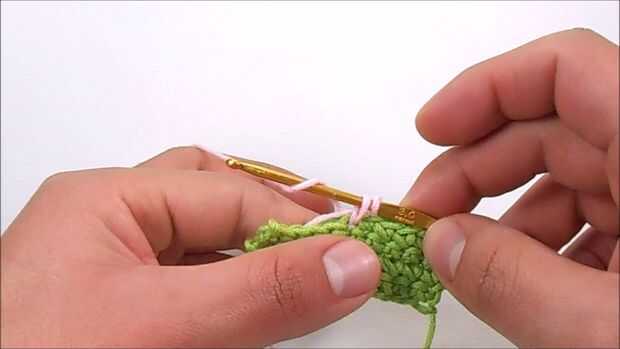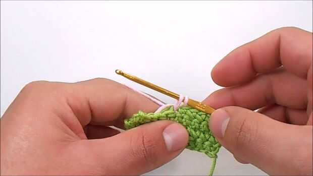 Para hacerlo: al pasar el gancho por la parte superior de la puntada, debe poner las sobras de ambos hilos, sobre el gancho.