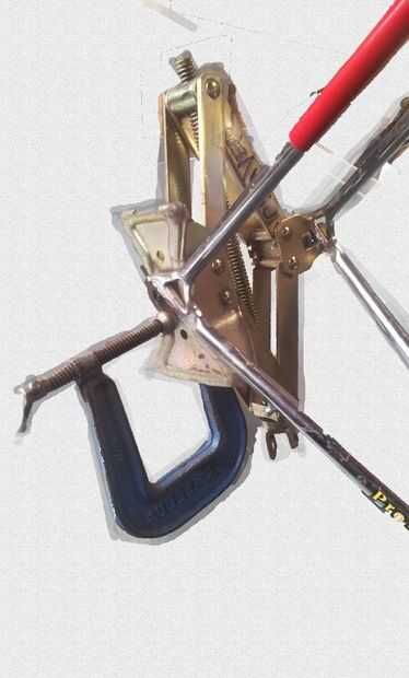 Comprar un viejo gato de tijera en una tienda de segunda mano, el gato de "tijera" en el cuadro se extenderá de las estancias de cadena cerca. Si lo desea, puede utilizar dos pinzas para mantener caras interiores de la deserción en dos planos imaginarios precisamente paralelos durante todo el proceso de frío.