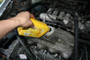 Con el filtro de aceite en el lugar y el desagüe perno sustituido puede llenar el motor con la cantidad aprobada de aceite a través del llenado de aceite del motor. Un embudo puede hacer este paso más fácil, dependiendo de la ubicación de relleno de aceite. Más botellas de aceite están diseñadas para limitar gorgoteo y hacer verter el aceite nuevo un trabajo suave. Cuando termine de llenar el motor con la cantidad apropiada de aceite fresco se puede sustituir el tapón de llenado de aceite. Mantener las botellas de aceite vacía.