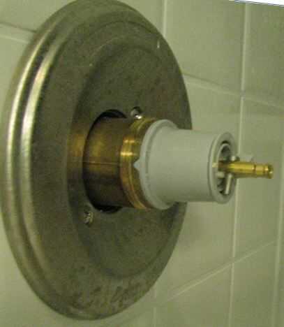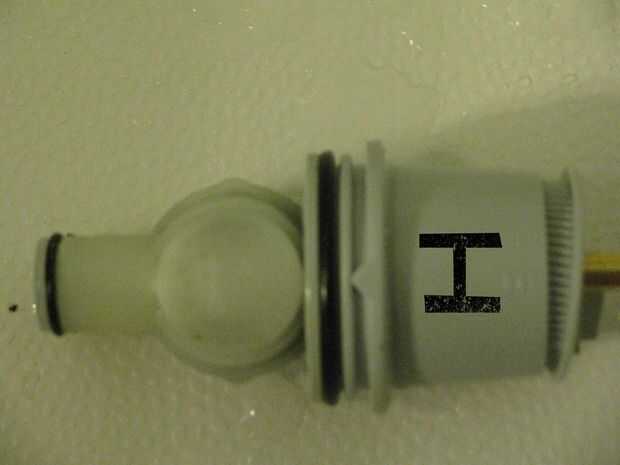 2. localizar el H que significa el lado caliente del cartucho. Al insertar el cartucho, asegúrese de que la h está en el lado caliente del cuerpo de la válvula, que, mirando la válvula está en el lado izquierdo. (La H es gris y levantada en el cartucho, en la figura 2 se hizo negro para propósitos de la visión).