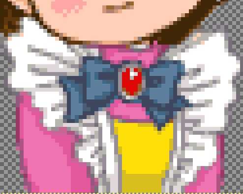 Zoom al aumento normal y ver cómo se ve ahora su sprite (imagen 2). Allí, ella está mirando muy bien! Ahora voy a repetir rápidamente todo el proceso para cambiar su arco a un montaje más color para que coincida con su vestido (fotos 3, 4 y 5).