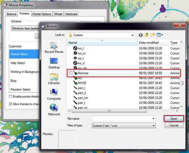 Si es el cursor deseado, haga clic en el botón 'Abrir' a la derecha.