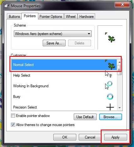 Esto cierra la ventana de carpeta y llevará a la ventana de 'Propiedades del ratón' y en lugar de los aburridos cursores que tenía antes, el cursor que elegido estará allí.