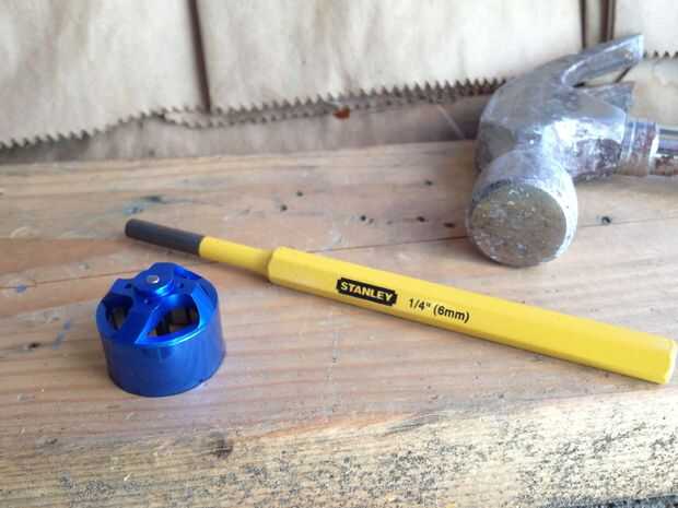 Paso 3: Tomar el punzón de 1/4" y suavemente pero firmemente golpee el eje del motor para quedar al ras con la carcasa.