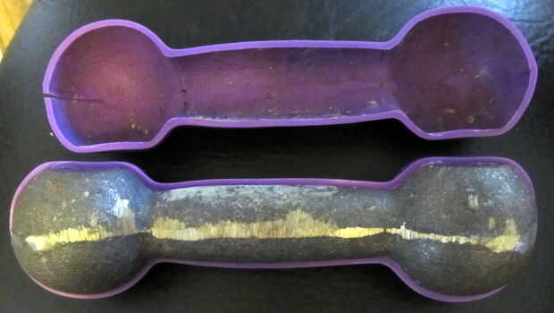 Mesa concreto doblado de un molde de goma.
