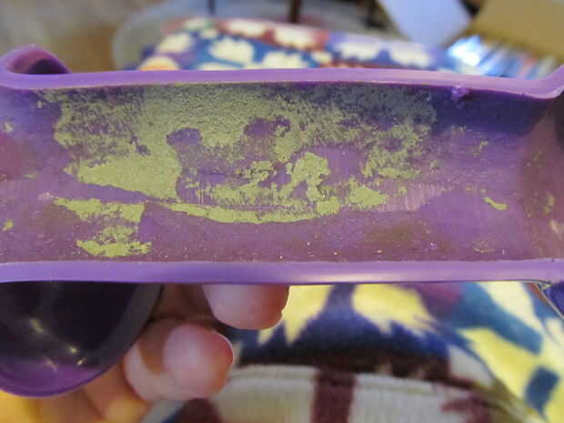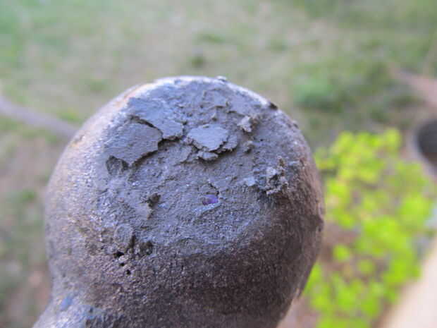 El proceso de fundición deja arcilla muy fina en el metal. Esto queda atrapado debajo de la capa de goma.