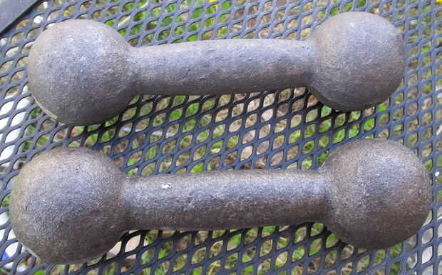 Ahora como los pesos son de hierro, usted podría optar por Unte con manteca y hornear por horas lograr su clásico hierro fundido del condimento, como uno haría con una sartén vintage que accidentalmente había funcionado a través de la arandela de plato.