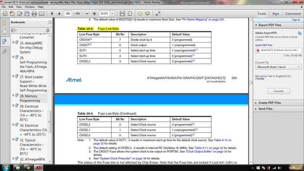 Ahora la combinación de los 8 bits, la requiere fusibles baja byte es 11100010.