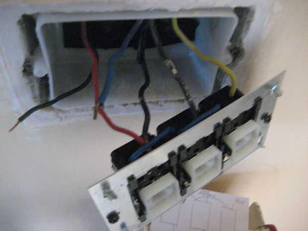 Ahora empuje el marco en caja y si es necesario dobla los cables más. Siguiente paso es para empernar el marco a la caja y You ' r casi listo!