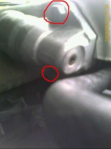 a continuación Ubique los dos tornillos (uno en la parte superior y el otro en la parte inferior) y con su cubo de 10mm y una llave, retire los pernos. Tenga cuidado, una vez que usted retire los pernos, el motor será completamente y probablemente se caerá si no apoyado. También, si usted está planeando en volver a utilizar la actual Junta Asegúrese de apoyar el motor una vez que los pernos se quitan para que no resulte dañado el empaque de caer al suelo.
