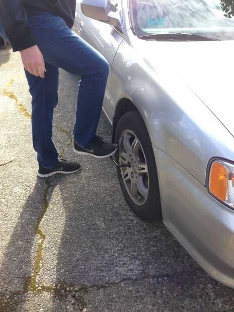 Aflojar las tuercas antes de levantar el coche de lo contrario su neumático sólo girará cuando alzado con el gato de la tierra. Puede usar su pie en la llave para que usted puede poner su peso completo en aflojar las tuercas del estirón. Nota: Asegúrese de aflojar las tuercas del estirón que va diagonalmente a través y no hacia la derecha o hacia la izquierda.