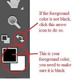 Que vas a pintar sobre la foto con este pincel. Pero antes de hacerlo, asegúrese de que su color de primer plano es de color negro.