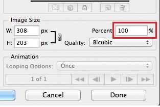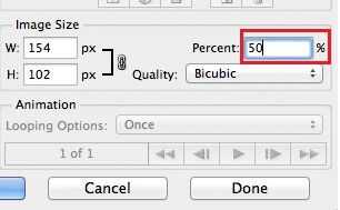 Sección en el tamaño de la imagen de la ventana, cambia la configuración de porcentaje y pulse Enter (ej. 100% a 50%)
