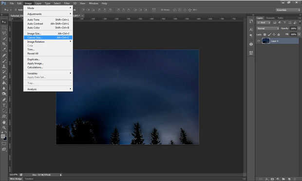 A continuación, en el menú imagen Seleccione "Lienzo tamaño..."