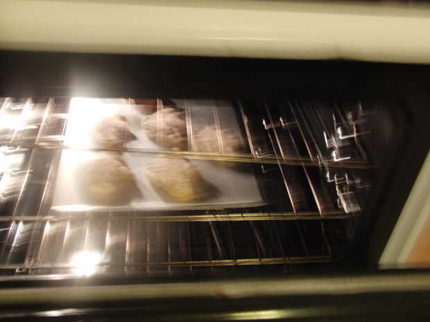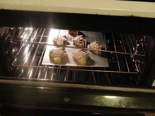 Al horno cada lote en una charola sin engrasar durante 6 minutos en un horno de 450 grados Fahrenheit sobre el estante del medio.
