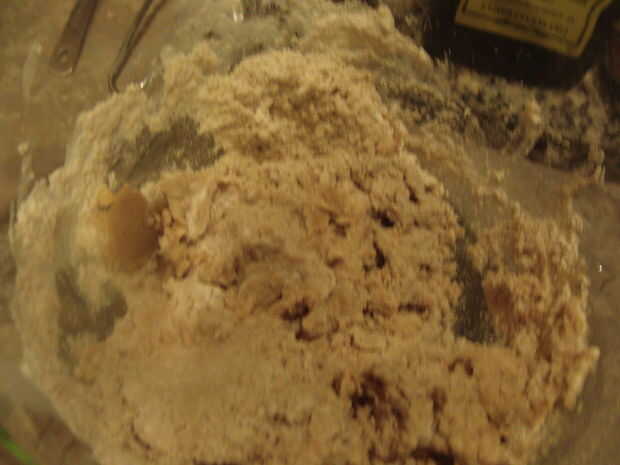 Para un segundo lote, replican la misma receta con el mismo procedimiento y otros ingredientes pero sustitución aceite de oliva para la mantequilla. Me pareció más fácil de mezclar este lote ya que el aceite era un líquido en lugar de un sólido duro como la mantequilla. La masa era más seco y crumblier que la masa de mantequilla.