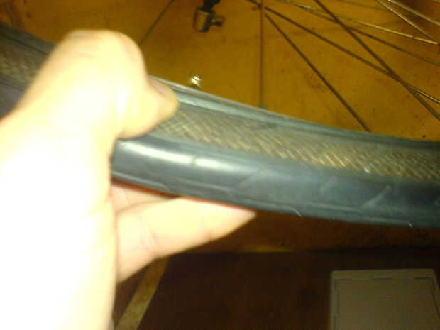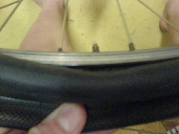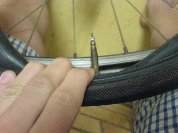 Al poner un nuevo neumático y tubo, poner el neumático en primera (medio sobre) Deslice el tubo en y poner la válvula por el agujero y poner la otra mitad del neumático. Asegúrese de que los tubos un poco bombeados para arriba.