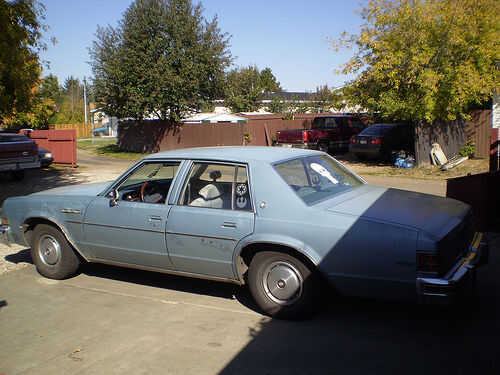 El coche: Es un Buick LeSabre. Iit de 1977 ha sido conocido como el Halcón Milenario (vino en eso, eres más valiente que yo pensamiento.) y como el carro de Buick Kampf (es tan grande como un tanque y maneja como un Bedford!)