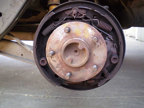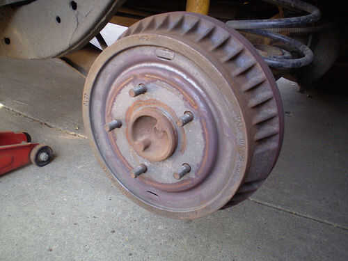 una vez que tienes el tambor-debería ver el funcionamiento interno. probablemente te parecerá una pesadilla sucia oxidada. -Trate de no respiración de polvo ahí - va a ser asbesto de las zapatas de freno - y que voy a matar.