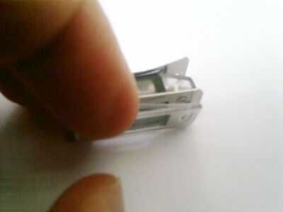 Introducir la uña (u otro objeto plano fino) entre el panel frontal de plástico ("window2) y la parte delantera de la abrazadera metálica. Ejecute la uña a lo largo de la brecha entre la frente plástica y el clip, tuerce ligeramente para aumentar la brecha. Hacer esto hasta que suavemente o bien puede retirar el panel de plástico lejos del resto de la unidad o se cae. También hay un delgado anillo de goma, esto debe salir a la ventana.