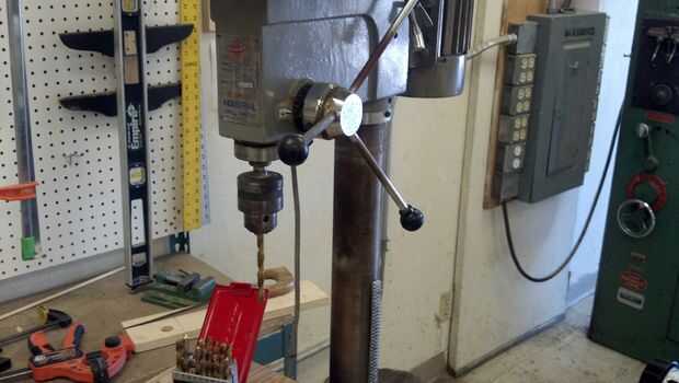 cambiar la velocidad de huso de un taladro manual requiere físicamente ajustar cinturones entre poleas. En este ejemplo, tenemos tres conjuntos de polea dos correas en un taladro de JET. La velocidad original es 540 y va estar cambiando a 1840.Hice