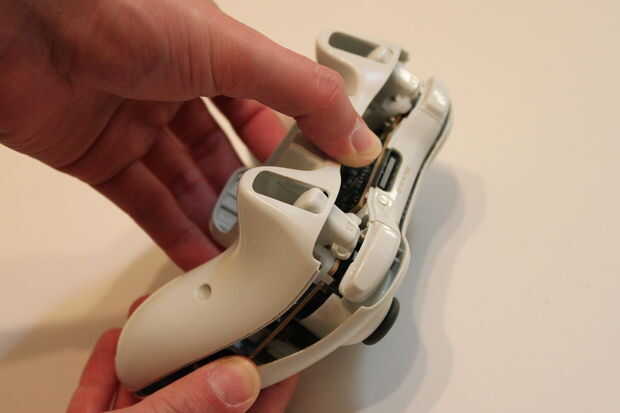 Nota: Algunos de los componentes dentro será propensos a caer. Asegúrese de evitar que esto suceda y mantener el control con los sticks, por lo menos hasta cierto punto, en la posición hacia abajo. (como se muestra en la imagen)