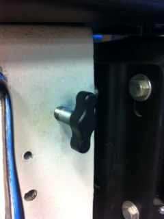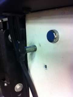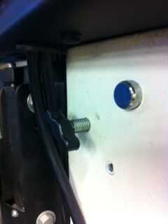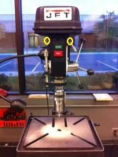Hay dos tornillos a cada lado de la prensa del taladro.  Afloje ambos tornillos para permitir que el motor se muevan.  Los tornillos se encuentran debajo del panel a cada lado.