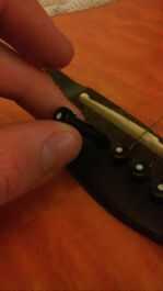 Este paso parece bastante obvio; Si quieres poner cuerdas nuevas a tu guitarra, debe comenzar por sacar las antiguas. La mejor manera de hacerlo es continuamente aflojar las cuerdas hasta que usted pueda deslizar la cuerda por el orificio en la clavija que sostiene en su lugar. El otro extremo tiene una bola de la punta para mantener la tensión de la cadena por lo que simplemente no se deslice hacia fuera. Quitar la cuerda de una guitarra eléctrica es fácil. Tstring se inserta a través de un orificio en la parte posterior del cuerpo de la guitarra con el lado de la bola va en pasado. Para quitar la cadena usted simplemente tire de ella hacia atrás a través del cuerpo. En acústica, la bola se lleva a cabo en lugar por poco las perillas plásticas. Eliminación de aquellos puede ser complicado; Normalmente utilizo un cuchillo de mantequilla para deslizar las clavijas hacia fuera. Si realmente sientes necesario, usted puede comprar pequeña herramientas de plástico diseñadas para eliminar estas perillas. Generalmente ejecutarán alrededor de 10 dólares y puedes comprarlos en tiendas de música.