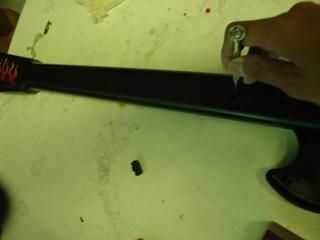 Desenroscar el cuello de la guitarra y asegúrese de que la espalda esté apagado. Debe haber 5 tornillos creo, soy demasiado perezoso para ir cheque. Es 4,5, o 6. O tal vez 7. USTED SABRÁ QUÉ HACER, BASTA CON MIRAR LAS FOTOS!! =)