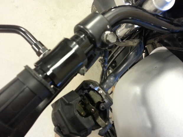 Me afloja las abrazaderas del espejo y me les fuera del camino. Seguido por la luz de cortaron interruptores a la izquierda y el motor apagado a la derecha.