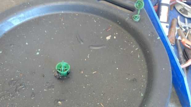 Desenroscar la tapa verde en la parte superior de la bandeja.  Esto permitirá que el aceite fluya de su vehículo en el depósito.  Luego coloque el recipiente debajo del tapón de drenaje de aceite de motor de su vehículo.