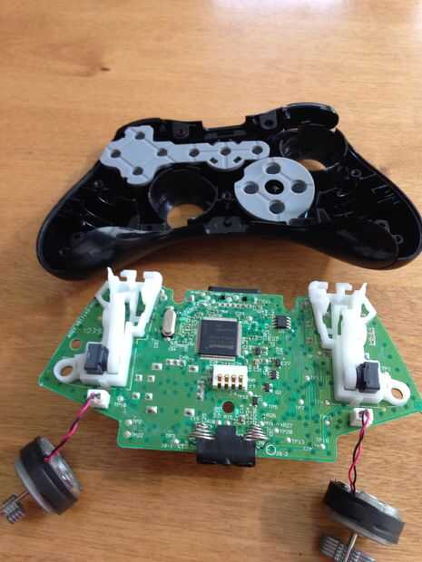 Ahora tiene que quitar la placa de circuito. Lo hice presionando el joystick hacia adentro. Luego retire la pieza gris largo, ligera de goma para revelar las partes posterioras de los botones principales. Simplemente quitar estos botones y poner los nuevos en el. Cada botón tiene un conjunto específico de protuberancias a los lados, así que no se preocupa de poner los botones de forma incorrecta. Vuelva a colocar la goma después de cambiar los botones.