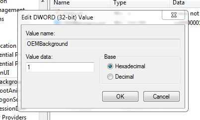 Doble clic en la entrada OEMBackground y cambiar el valor de 0 a 1