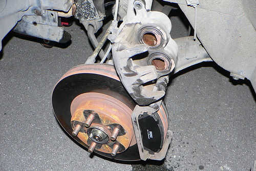Una vez que la pinza está fuera del camino puede tomar tus pastillas de freno viejo y retírela. Generalmente se deslizará derecho hacia fuera sin ningún problema. Probablemente veremos un poco más grueso que su colchón actual! Es cómo sabe usted realmente era hora de cambiar hacia fuera.