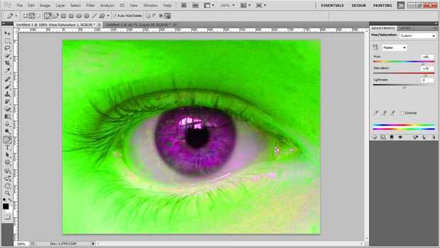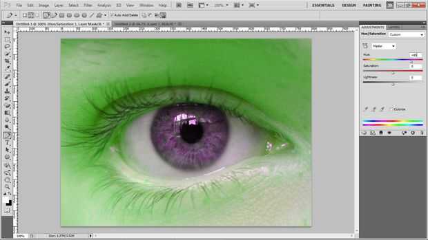Deslice el control deslizante de color hasta el ojo en sí es el color que desee. El resto de la imagen cambiará de color también, pero no te preocupes. Fijamos en un minuto.
