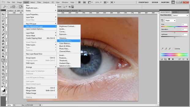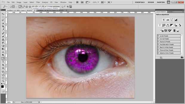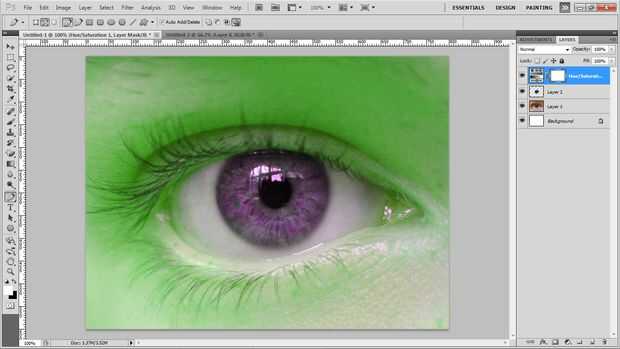 Esto fusionará la capa de ajuste y la capa del ojo. Al combinar, el color debe aplicarse sólo a la vista.