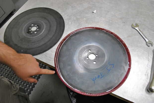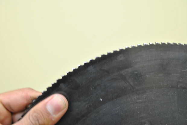 Aquí es una foto de la hoja nueva (tiene una capa de goma sobre los dientes ahora. Retire el engomado, pero asegúrese de no colocar la lámina sobre una superficie de metal. Nuestra tienda pasa a utilizar las hojas de carburo, pero es una regla general para no poner la hoja en una superficie de metal para evitar los peligros de saltar una hoja. En esa nota, asegúrese de que inspeccione la cuchilla defectuosos. Si la hoja está defectuosa, no no uso de la hoja.