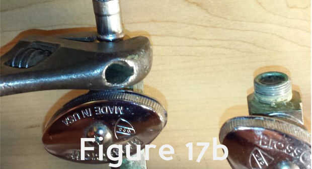 Comentario: Apriete el dedo tuercas primero firmemente (figura 17a). Luego utilice una llave ajustable (figura 17b) para activar de vuelta completa 3/4 a 1.