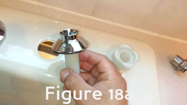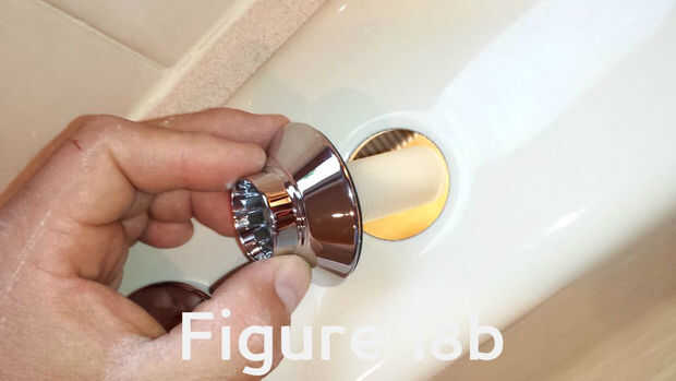 Destornille la tuerca de montaje del rociador (figura 18a) y soltar la parte superior de la montura en el fregadero (figura 18b).
