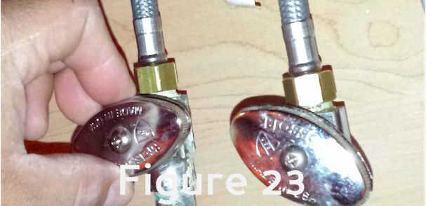 Gire las válvulas de agua caliente y fría en sentido antihorario (Figura 23).