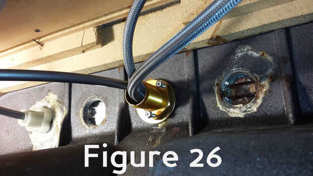 Busque fugas debajo del fregadero (Figura 26). Preste especial atención a los lugares donde se hacen las conexiones.