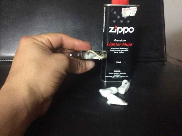rellenado de 1/4 de fibra, se coloca liquido inflamable para zippo, se coloco despues el resto de la fibra se vacia liqyudo hasta dejarlo un poco humedecido y se coloca la tapa de algodon para evitar el vapor del escape de liquido.