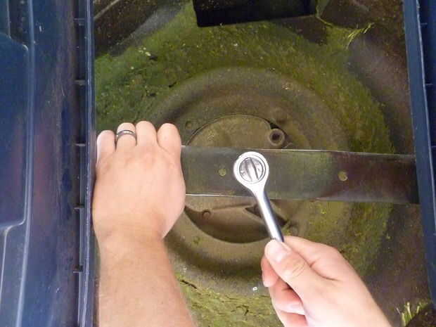 Cuadro 1: Usando la llave del tamaño correcto o el casquillo, gire su fijación perno hacia la izquierda para aflojar el perno. Recuerde que tighty de Heydon/diestro zurdo. La hoja se convertirá como girar la llave, para que pueda utilizar su mano para sostener la hoja gire mientras afloja.