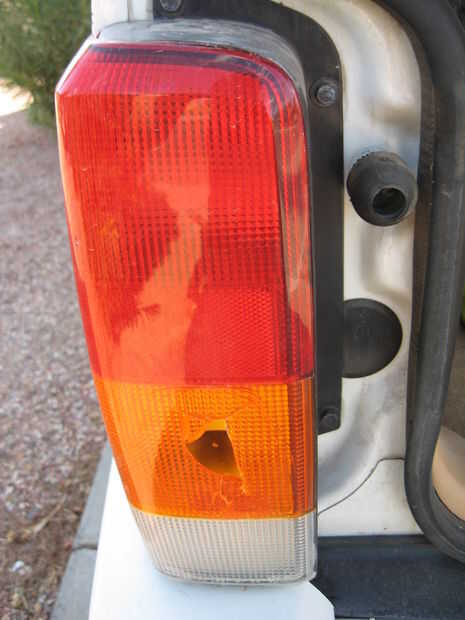 Como se puede ver, puse un bonito agujero directamente a través de mi luz de la cola. Yo podría haber grabado encima o generalmente kludged juntos, pero ese tipo de cosas sólo es aceptable en jeeps si usted rompió haciendo algo interesante. Romper con el bote de basura es decididamente no. Para arreglarlo necesitaba una cola nueva caja de luz. En este conjunto de instrucciones que voy a ir a través de cómo quitar el conjunto roto viejo, retire todas las luces y luego instale al nuevo montaje de luz de cola. Es relativamente sencillo y puede hacerse por una sola persona en unos 30 minutos a menos que estés aterrorizado de recoger una llave (Nota: si es el caso, puede que desee conseguir algo que no sea un jeep). Esto es casi tan simple como obtiene para el mantenimiento del coche. Tiene algunas herramientas que usted no tenga ahí pero va a ser mucho más barato comprar las herramientas que sería para pagar a alguien para solucionar este problema.